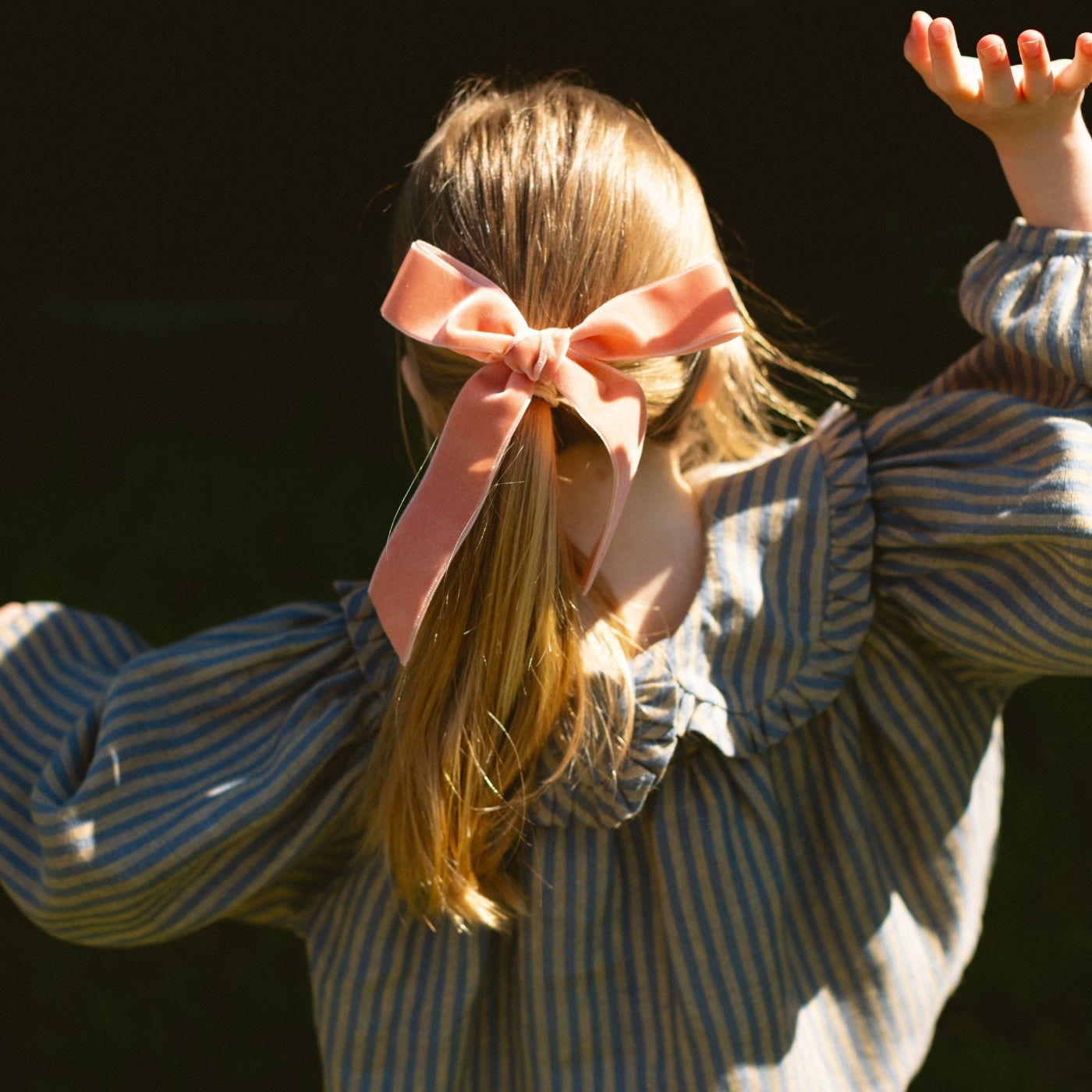 A simple, oversized hair bow with a classic shape - the perfect pairing for any NQ piece. Made from Apricot Blush Velvet - a beautifully soft velvet in a warm, pink-peachy shade.
