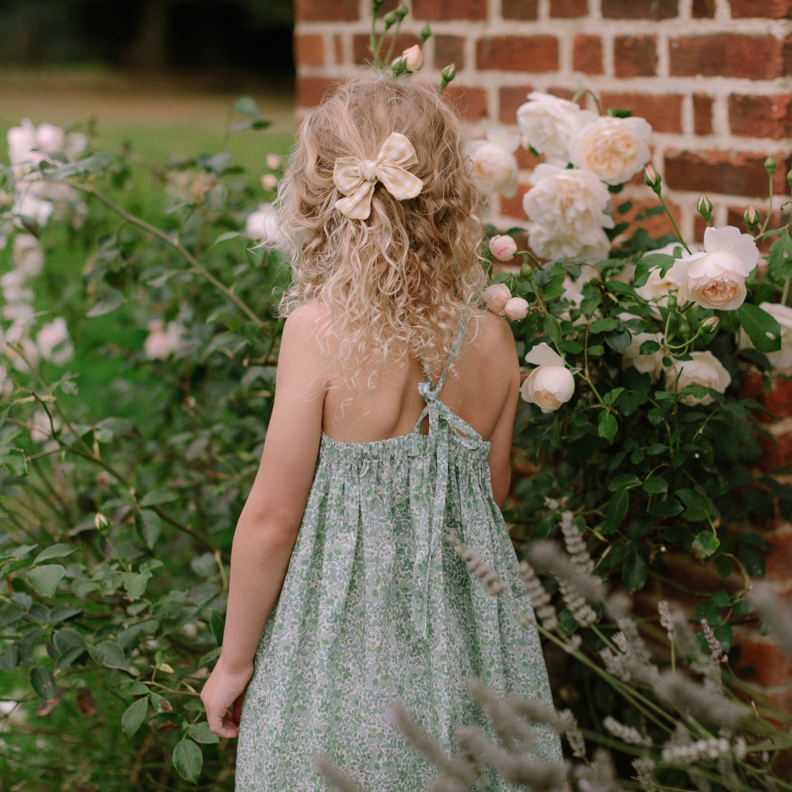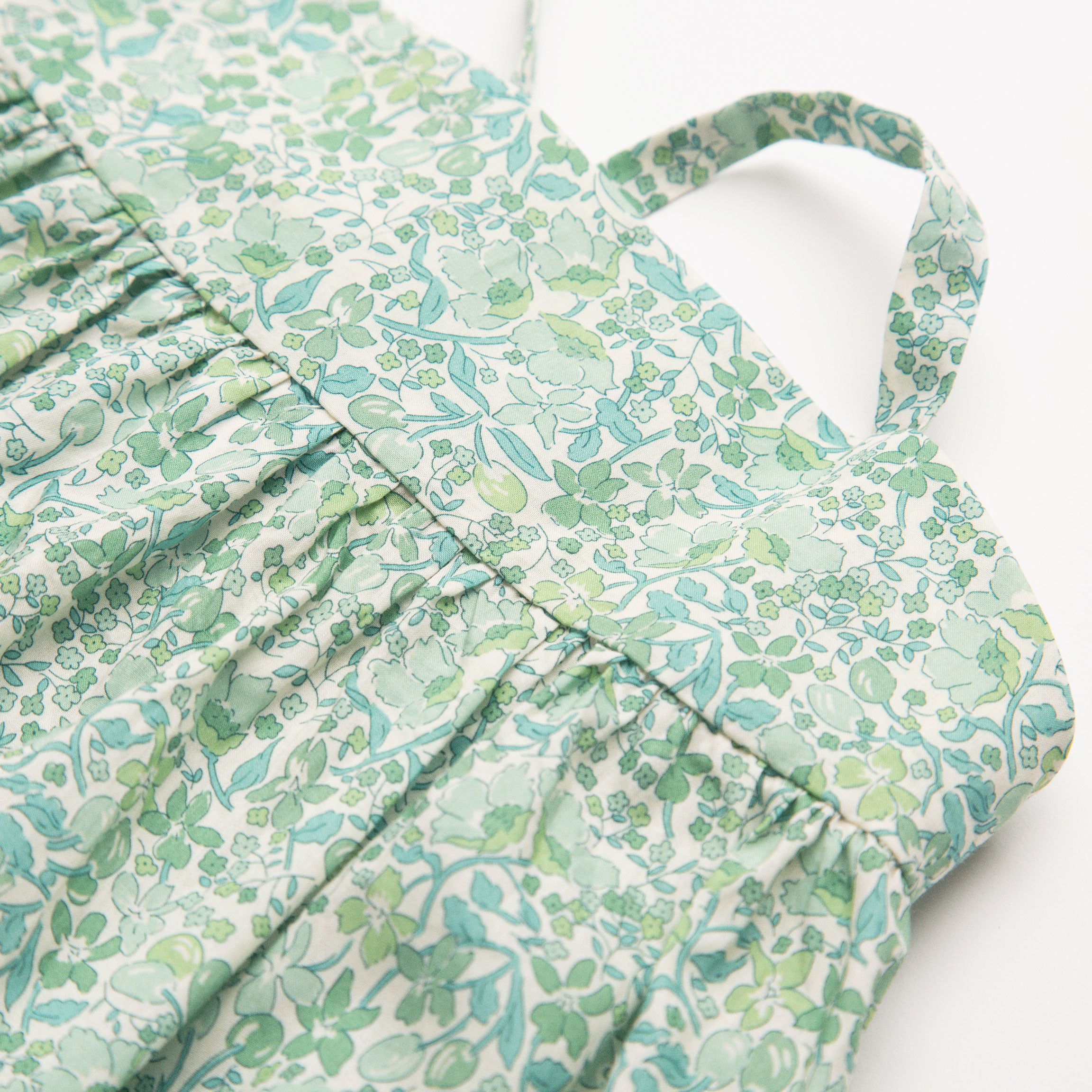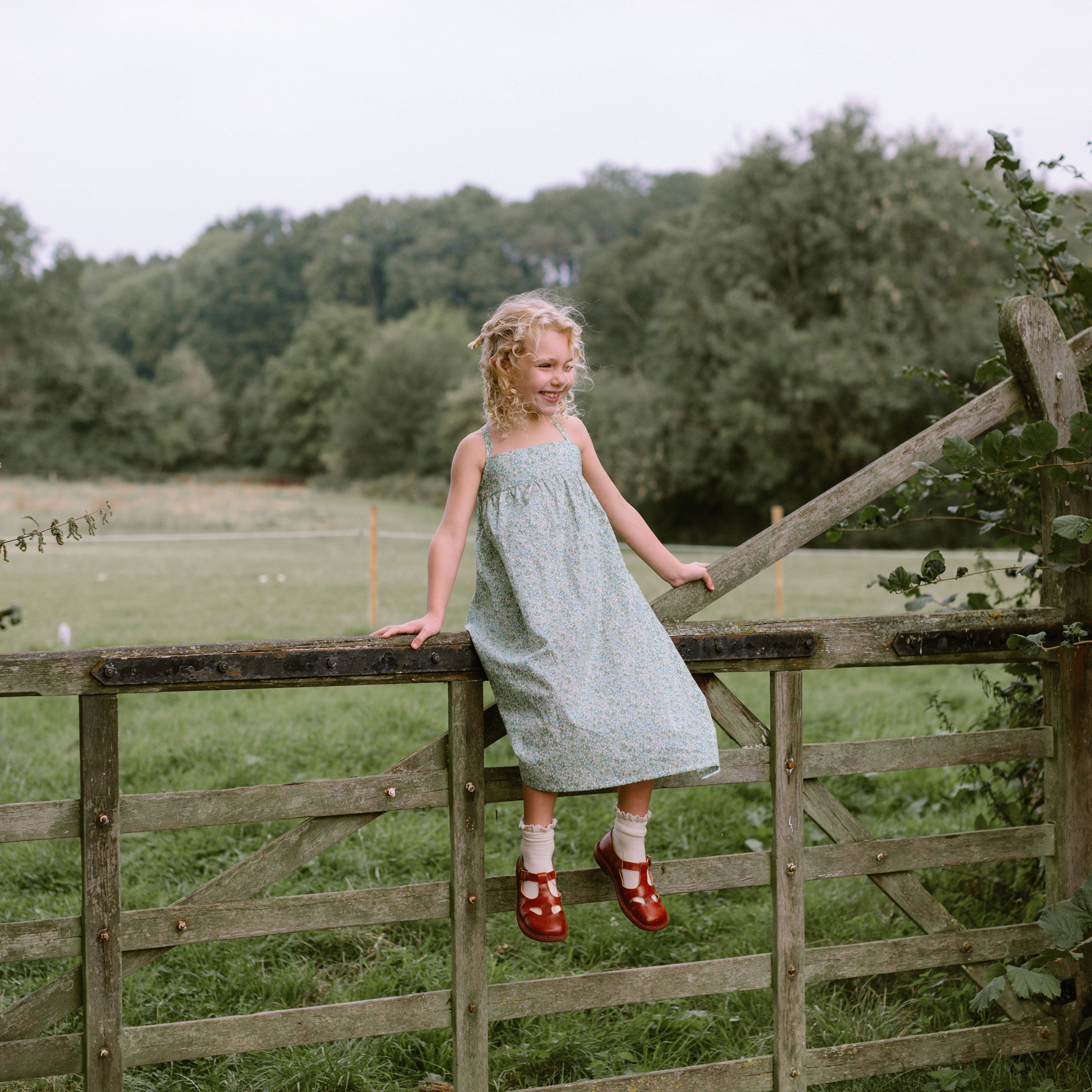 Floaty midi dress with fitted top, elasticated back and adjustable straps that tie through loops at the back. Skirt gathers at the chest to create a full, floaty style designed to sit calf to ankle length. Perfect for layering over a blouse in the cooler weather and stripping back in the summer. Made from beautiful Coward Liberty print tana lawn organic cotton, an exclusive print to NQ.